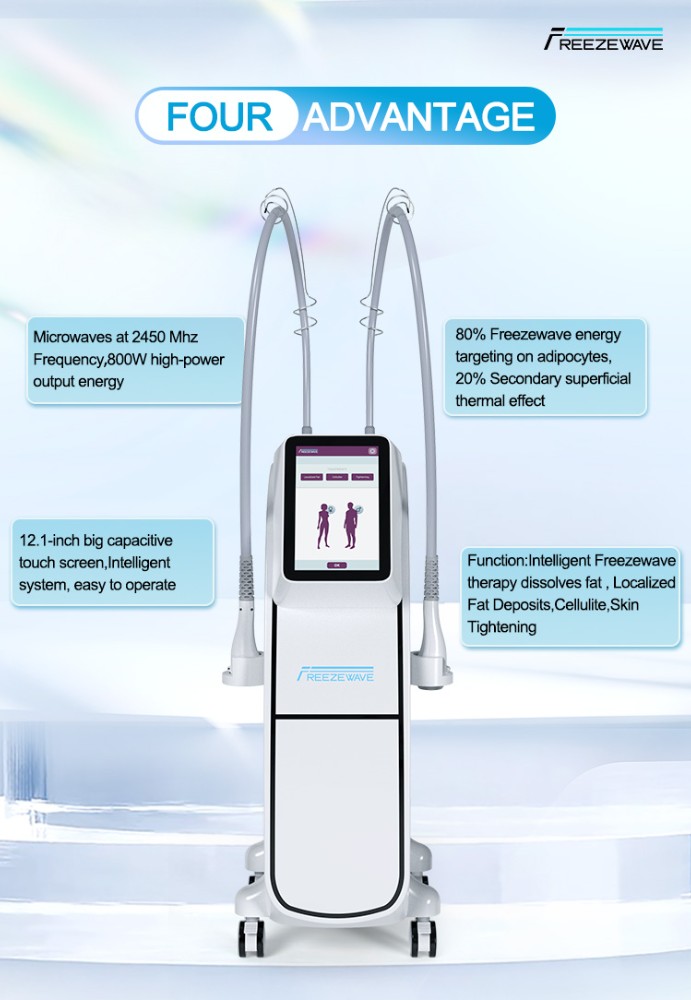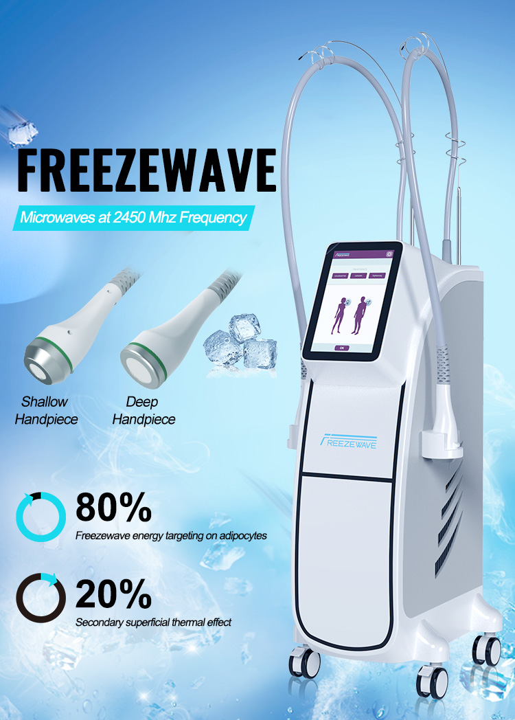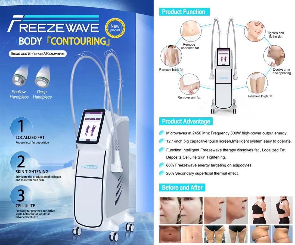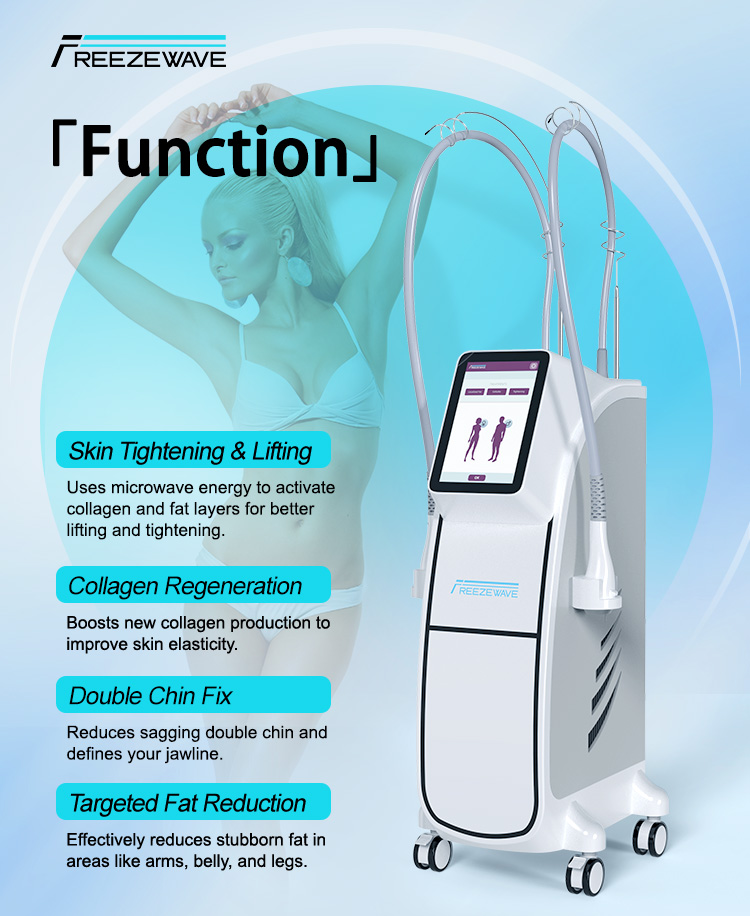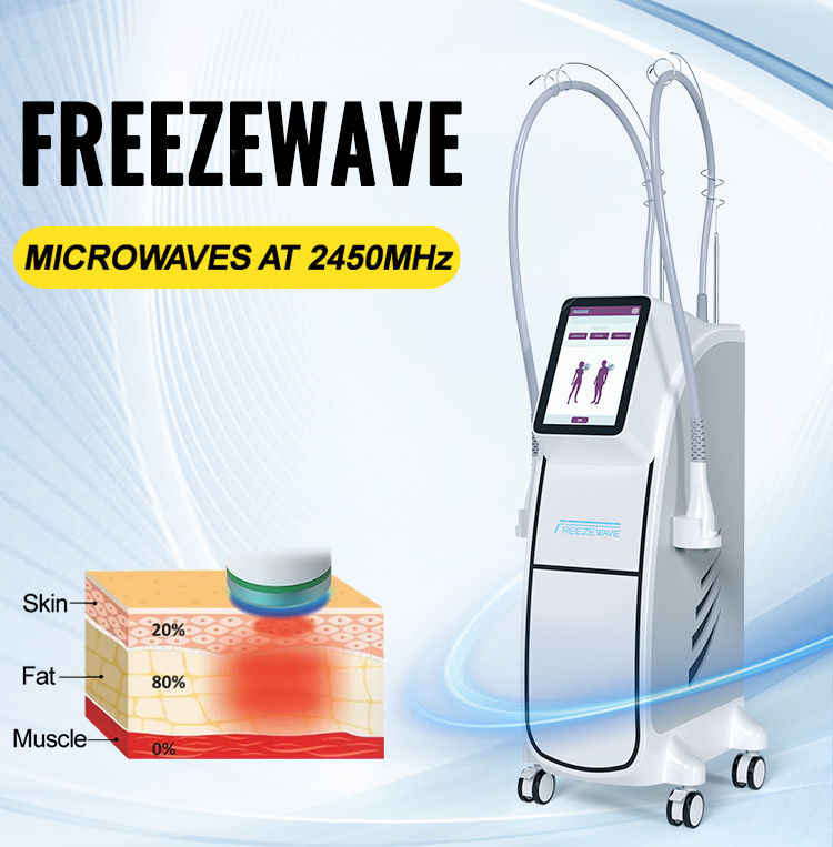 FREEZEWAVE is a non-invasive microwave therapy that selectively targets fat cells using controlled microwave energy to safely, effectively, and non-invasively reduce localized fat deposits and cellulite. Microwave stimulation causes fat cells to release lipids, disrupts the connective tissue responsible for the orange peel effect, and simultaneously stimulates collagen and elastin production in surrounding tissues. This helps improve skin firmness and elasticity, resulting in smoother skin.